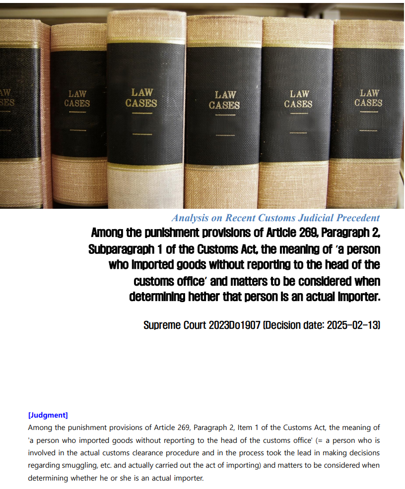 [Analysis on Recent Customs Judicial Precedent] Among the punishment provisions of Article 269, Paragraph 2, Subparagraph 1 of the Customs Act, the meaning of ‘a person who imported goods without repo